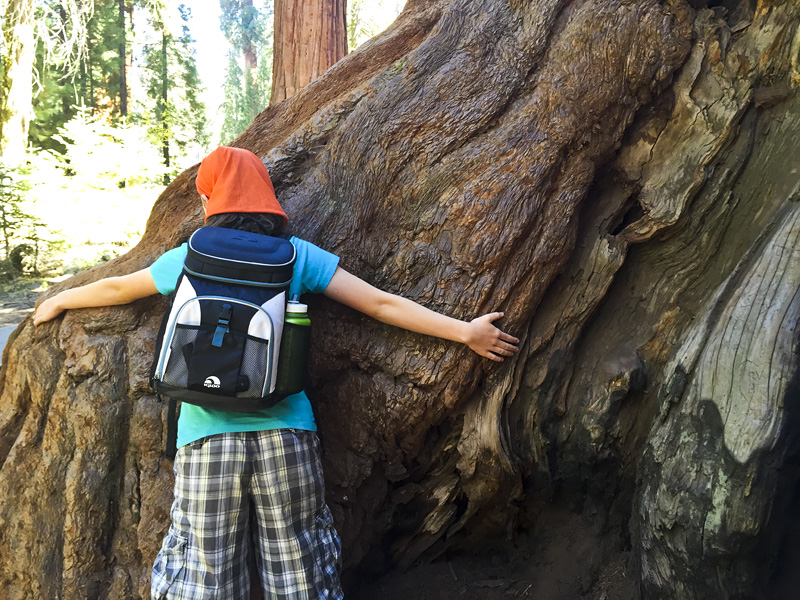 Although we woke up in Sequoia National Park, we haven't seen a Sequoia yet. We're in a part of the park with altitude too low for the sequoias to thrive. The area that we are in last lost millions of trees over the last several years due to drought. We decided to set out immediately to the part of the park where we would see Sequoias. Feeling down? Hug a tree!