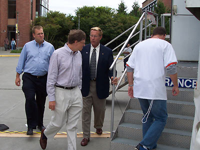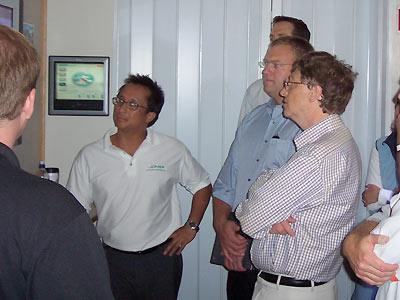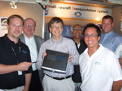 Because of non-disclosure agreements with NASA and Microsoft, I can’t go into particulars. The software mentioned in my portfolio only represents a portion of the features presented at this event, features that were also shown publicly at the Wright Brothers’ Centennial of Flight expo in Kitty Hawk, North Carolina. Suffice it to say the tablet PC in Mr. Gates’ hands (seen below) contains applications developed by me while working for DSI. Mr. Gates also watched the demo video I produced and edited.