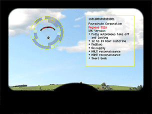 Electronic binoculars appear, a tracking mechanism follows, data pours across the screen ... and the presentation begins. Featuring over 40MB of video, the Powrachute presentation conveys a hard hitting sales pitch without taking a breath. The project was fun to develop and Powrachute is giddy with the results.
